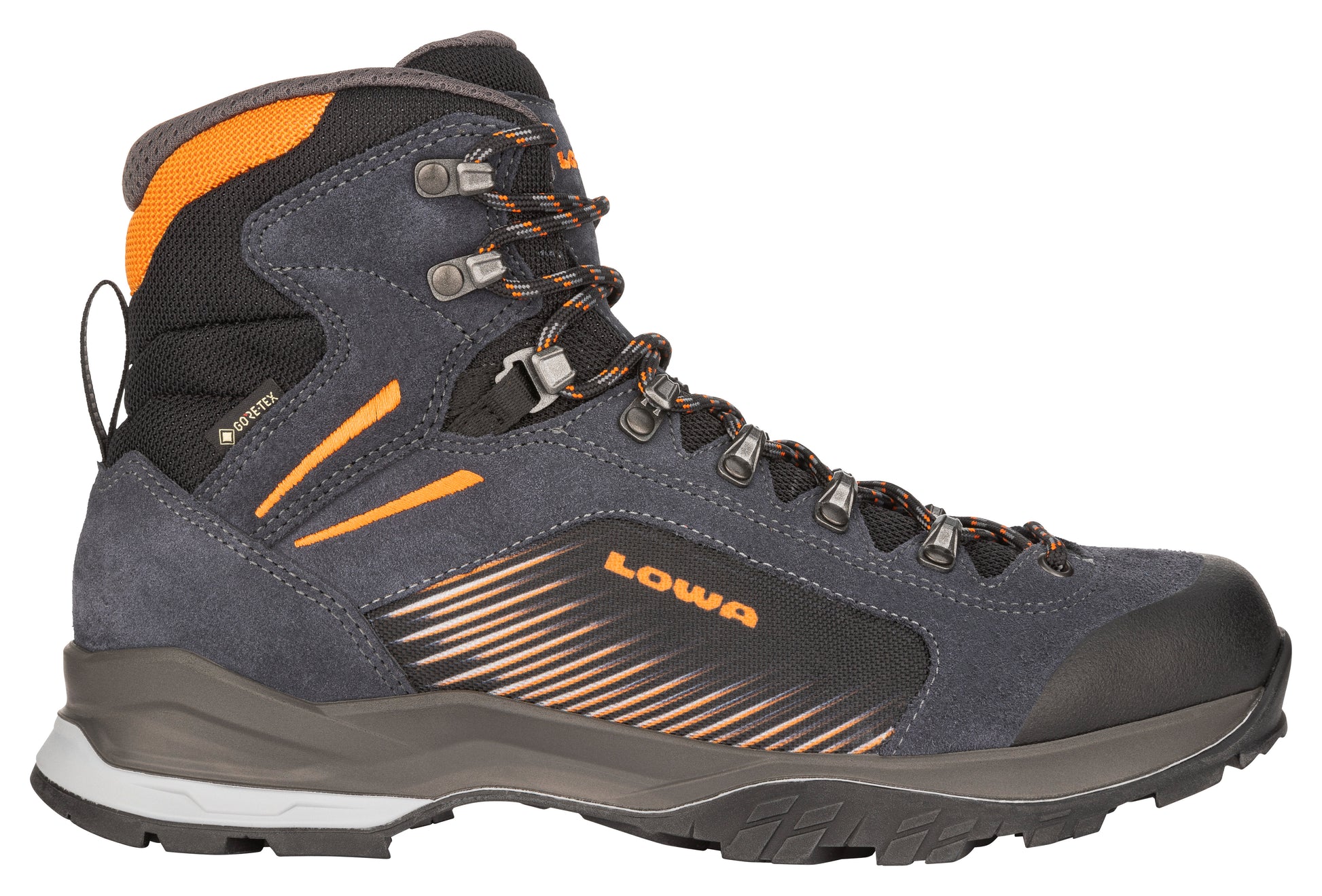 Was der LOWA Tucana für die Mädels ist, ist der LOWA VIGO für die Jungs. Ein Trekking-Stiefel der bayerischen Bergschuster LOWA für ambitionierte Wanderungen, Alpenüberquerungen oder Hüttentouren. Der moderat verwindungssteife Sohlenaufbau und die gute Dämpfung unter der Ferse lassen machen den VIGO zu einem Allrounder im Wander- und Trekkingbereich, der für die gelegentliche Tour oberhalb der Baumgrenze auch eine gute Figur macht. Wer einen wirklich leichten aber robusten Trekking-Stiefel sucht, sollte sich den LOWA VIGO einmal genauer ansehen. Der Seitenteil des Schuhs besteht aus robustem Nylon-Gewebe (natürlich mit einer wasserdichten Membran hinten dran, also keine Angst vor nassen Füßen). Außerdem ist der VIGO vorne mit einer sehr materialschlüssig aufgebrachten Gummi-Prallschutz ausgerüstet, der das Leder schützt. Der Schuh wirkt optisch schlank, kommt aber mit einem Herrenleisten daher, der an die allermeisten Füße passt. Stiefel aus dieser Serie sind sehr robust gebaut, hier bitte deshalb genau auf die Größe achten, lieber eine halbe bis ganze Nummer größer als gewohnt. Einen Finger breit Platz vor der Zehenfront ist sicher ein guter Tipp (einfach mal auf die Einlegesohle stellen, dann sieht man das ganz leicht).